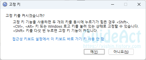 [Windows] 윈도우 Shift 키 5회 연타 고정키 알람 해제하기: 간단한 단계별 가이드