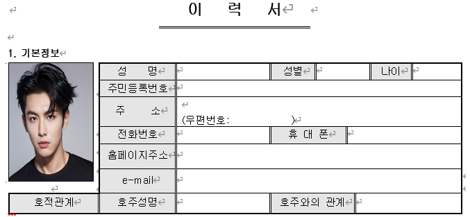 이 글에선 MS 워드에서 여백 없이 사진 넣는 방법을, 이력서 작성할 때 증명 사진을 사진 칸에 정확히 맞게 넣는 방법을 예시로 소개하겠습니다.