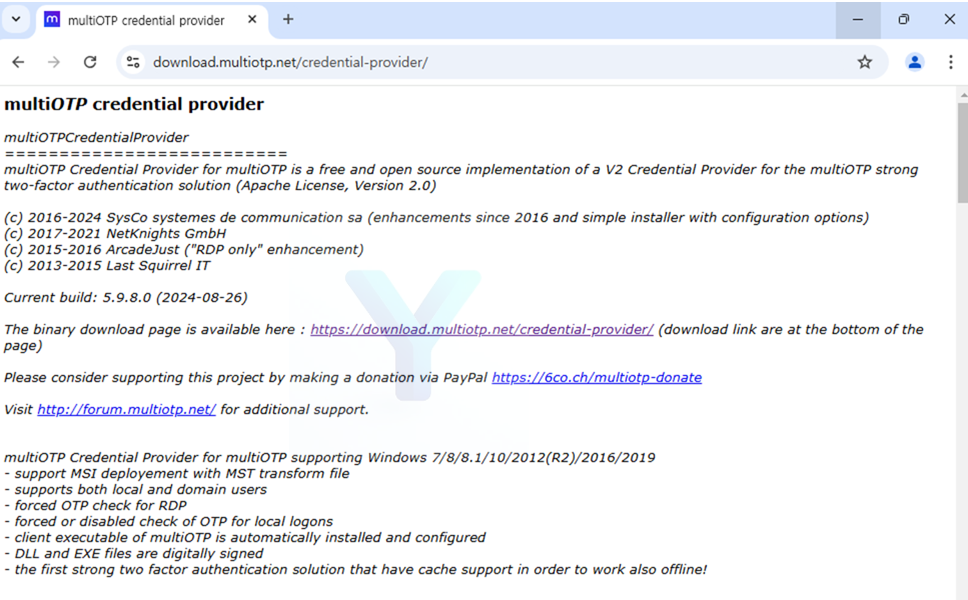 - multiOTP Credential Provider 설치 파일 다운로드.