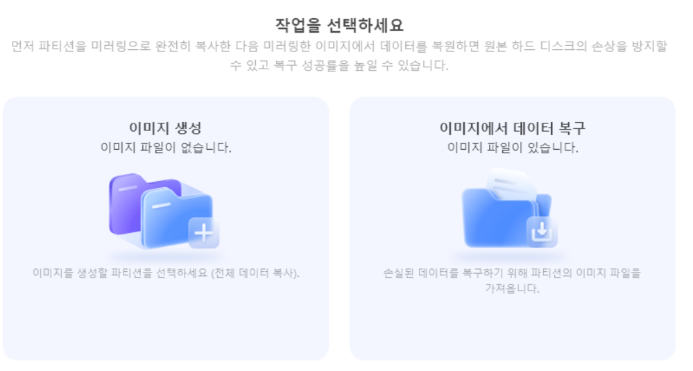 5) 이미지 복구 방법 - 이미지에서 데이터 복구를 선택하여 진행합니다.