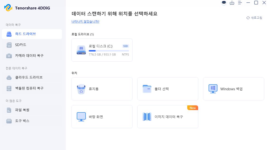 초보자에게는 ‘시스템 이미지 생성’이 어려워 보일 수 있지만, 전용 도구를 이용하면 클릭 몇 번으로 손쉽게 생성 및 복구할 수 있습니다. 그중 대표적인 프로그램이 바로 4DDiG Data Recovery (포디딕 데이터 복구) 입니다. 이 프로그램은 단순한 데이터 복구뿐 아니라 시스템 이미지 생성 및 복구 기능을 지원합니다.
