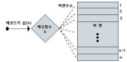 - 색인 주소 값의 데이터가 저장되는 곳을 버킷(buckey) 또는 슬롯(slot) 이라고 한다.