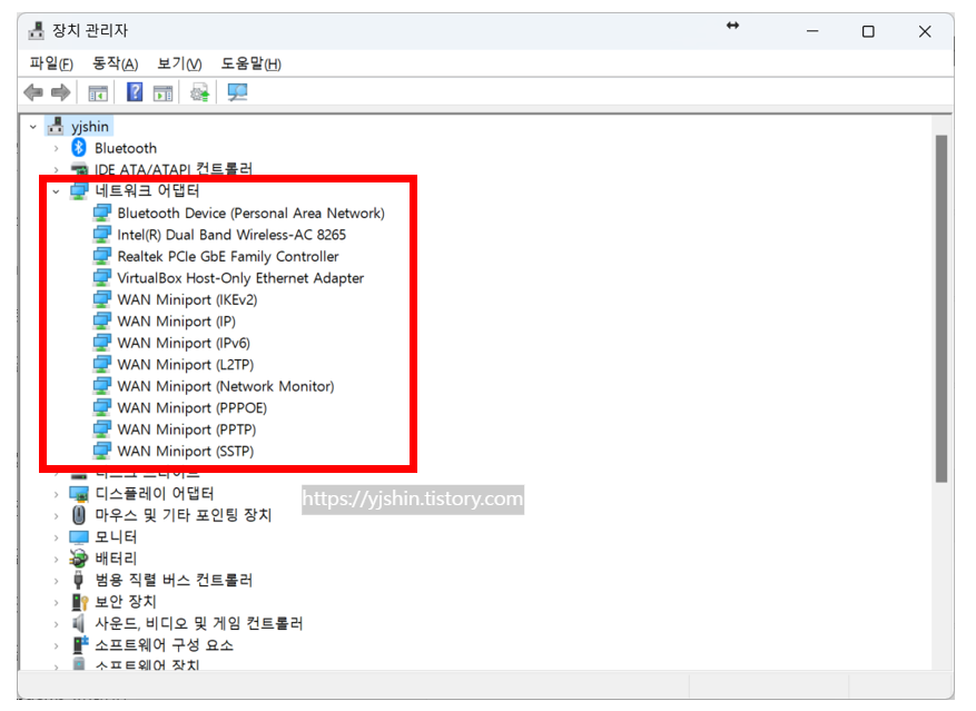 - 장치 관리자를 열고 네트워크 어댑터로 이동합니다.