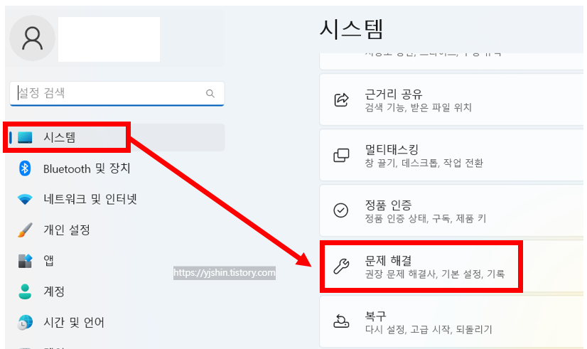 - 시스템으로 이동한 다음 문제 해결을 클릭합니다.